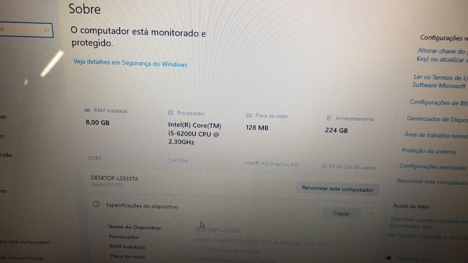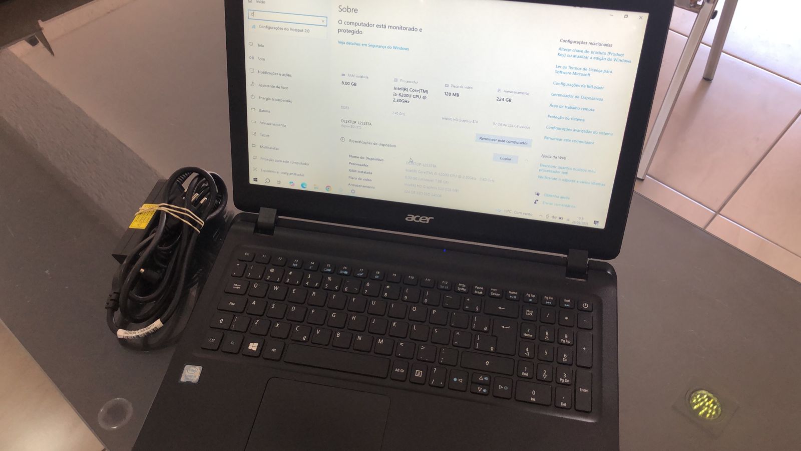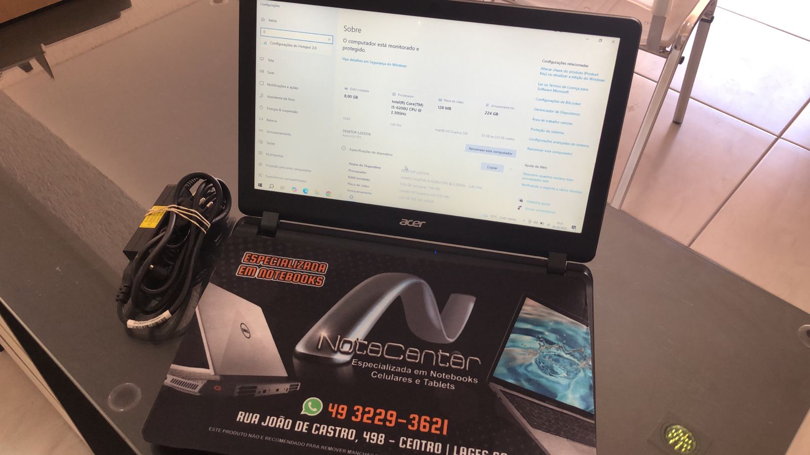 NOTEBOOK ACER I5-6200U 2.3GHz 8GB MEMÓRIA SSD 240GB WIFI 5G
